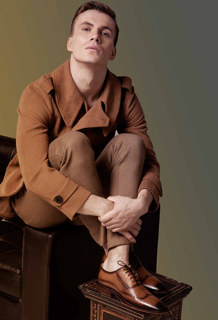 Strumento Handtooled Derby Shoes in Tan
